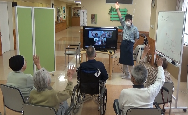 短期入所、上総デイをリモートでつなぎ脳トレを行いました。司会者はスタッフが行い、各事業所にはリハを担当するスタッフが中継役として現場を盛り上げてもらいました。