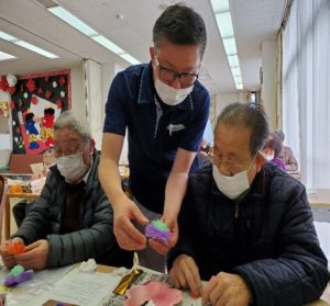 難しいところは職員が手伝いをし、個性あふれる作品が出来上がりました。