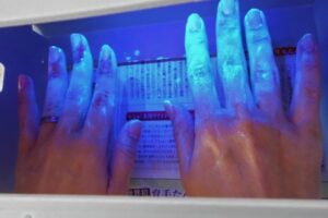 ・蛍光塗料とブラックライトを用いた手指消毒・手洗い