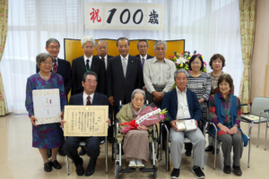 百歳到達者のお祝い・記念品の贈呈式