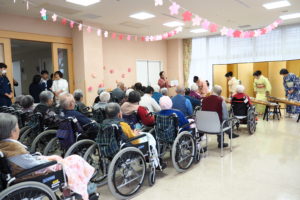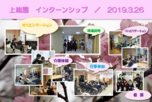 3月26日にインターンシップ(職場体験会)を行いました。 当日は、近隣の高校生が9名参加してくれました。 今回のインターンシップは、上総園で働いている様々な職種(社会福祉士・介護福祉士・介護支援専門員・看護師・理学療法士・作業療法士・管理栄養士等)の職員と直接進路等の相談ができるといった形で行いました。 また、希望職種の現場体験、行事への参加では、ボランティアの皆様による琴の演奏会も行われ、高校生の皆さんも利用者さんの移動を手伝っていただきました。 高校生の皆さん,また次回も参加してくださいね。 各課のご協力も、ありがとうございました。