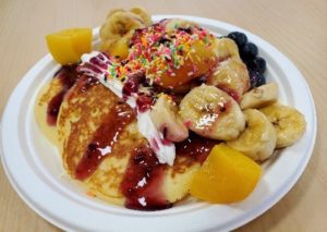 お昼は、ホットケーキに一人一人デコレーションをしました。沢山の個性豊かなホットケーキが出来上がっていました。