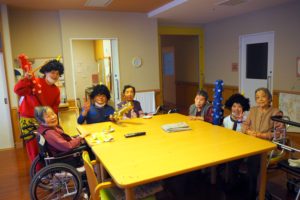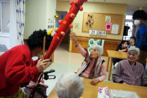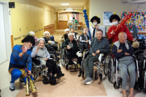 上総園では2月3日に赤鬼と青鬼が各フロアに登場し、豆まきを行いました。
