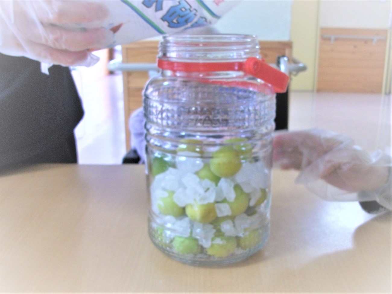 作り方は簡単ですが、その中にやっぱり皆様こだわりがあるようで、梅の並べ方や氷砂糖とのバランス等、私達職員が逆に教えていただきとても良い勉強となりました(笑)。