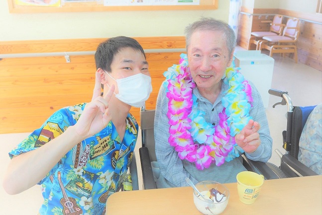 職員もアロハシャツに着替え、見た目にも「夏」と「涼」を演出しました!