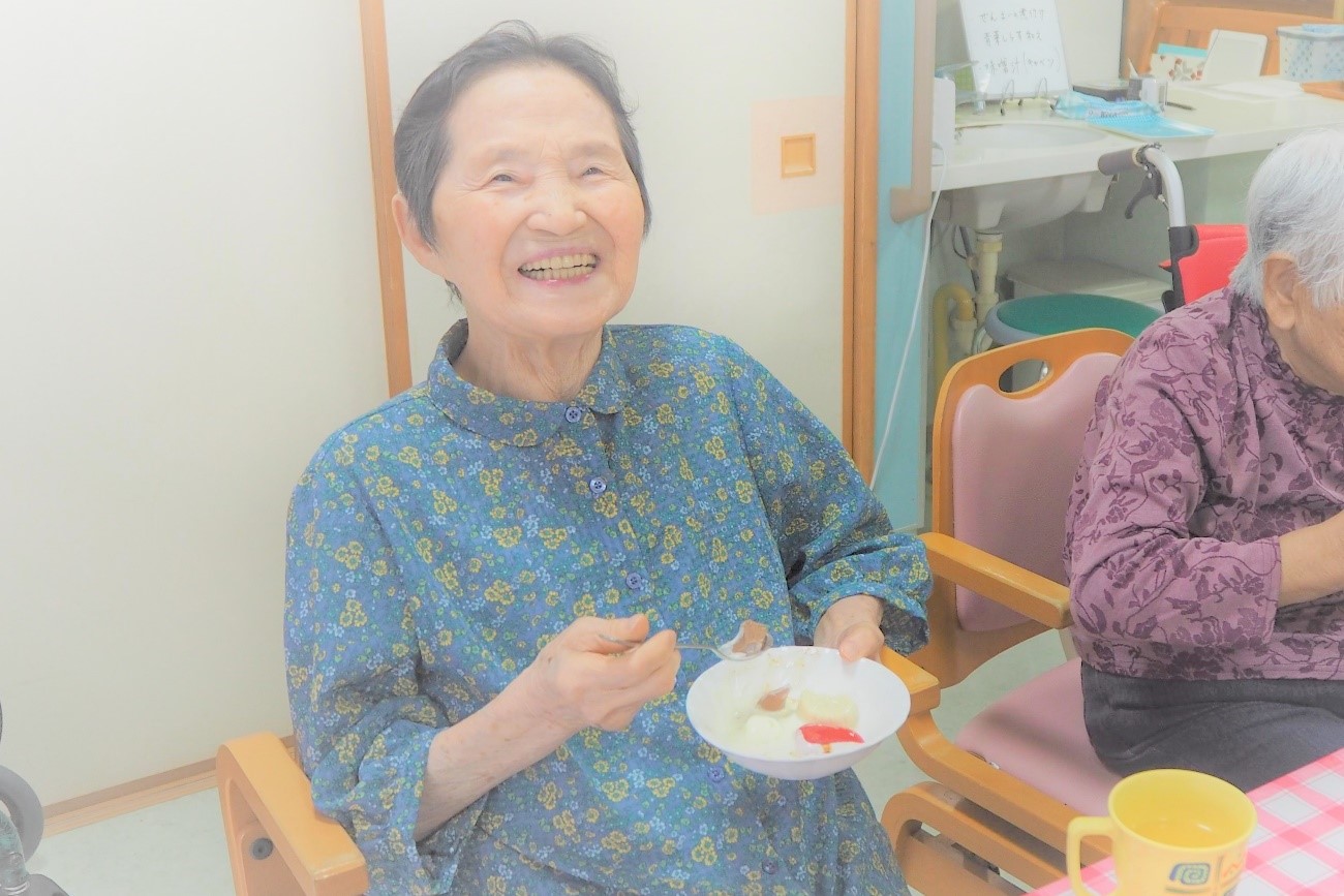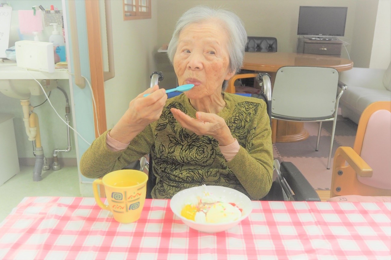 9月15日に、B館2階で栄養課協力のもと「手作りパフェ」を利用者の皆様に振る舞いました!