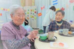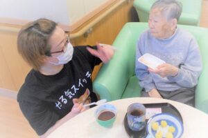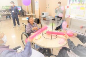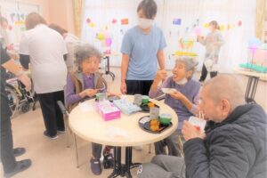 競技で盛り上がったあとは、利用者の方々からも要望も多かった「握り寿司」を振る舞い、