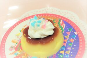 プリンにご自身でお好きにトッピングをし、オリジナルのプリン