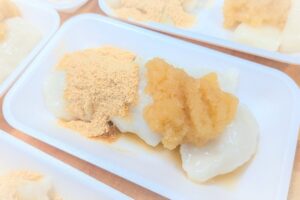 また、会場にいらした皆様には「きなこ」「おろし醤油」で餅を召し上がっていただきました♪