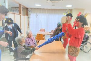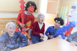 本日は節分行事として、鬼が各フロアをまわり、利用者の皆さんと豆まきを楽しみました。