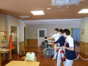2017.11.02お知らせ 防災訓練を行いました 11月1日、秋の火災予防週間に伴い上総園では夜間フロアでの火災を想定し、「初期消火」「避難誘導」「通報訓練等」の総合訓練を行いました。今後も様々な災害を想定し、訓練を継続していきます。