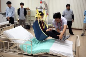 5月21日に福祉用具を取り扱う事業所の方を講師としてお迎えし、腰痛予防のための福祉用具の使い方やリフトを使用した移乗方法をテーマに講義していただきました。